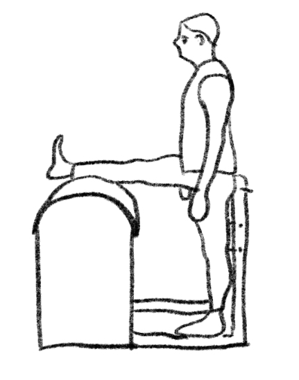 Starting position (common principles): Pelvis and spine neutral, stance leg stable, weight evenly distributed on foot. Facing forward: Stand between barrel and ladder, sacrum or back of thighs lightly touching ladder, facing barrel. Place one leg (straight or bent, externally rotated) on barrel. Inhale, lengthen trunk upward; Exhale, maintain axial elongation, fold forward from hips, feeling stretch in back leg; Inhale hold/adjust, Exhale control return. Side-lying: Stand sideways between barrel and ladder, hip or side of thigh near ladder lightly touching ladder. Abduct one leg onto barrel, opposite hand hold top rung. Inhale lengthen up; Exhale, perform pure lateral flexion toward barrel, avoid rotation; Inhale hold, Exhale return. Back-facing (leg straight): Face away from barrel/ladder, place one leg straight on barrel, hands hold top rung. Inhale prepare; Exhale, slide body weight back, feeling stretch in front of stance thigh; Inhale, use arms to pull body back to start. Back-facing (leg bent): Face away, one leg bent, foot and shin against barrel. Inhale prepare; Exhale, gently press knee toward floor while slowly pushing hips forward, deepening quadriceps stretch in stance leg; Inhale control, Exhale return. Imagery: Facing forward - fold from hips like a hinge. Side-lying - body bends sideways between two glass panels. Back-facing - imagine stance leg lengthening.