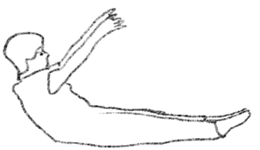 起始位:仰卧,双腿伸直并拢,手臂向后伸直举过头顶。 呼吸与动作:吸气,手臂和躯干向远延伸,避免下背压向垫子。吐气,手臂向天花板方向举起。吸气,同时将上半身卷起到胸部抬起的位置。吐气,脊椎一次一节继续向上卷起,直至整个身体向前弯曲,双手平行于地板。吸气,从骶骨开始向上逐节伸展脊椎,直至坐直。吐气,同时从骨盆开始向后逐节卷下,回到起始位置。吸气,手臂轻轻举过头顶。 想象提示:想象脊椎像一串珍珠,被一根线从尾骨端逐节提起,再逐节放回;身体像一张被缓缓卷起和铺开的地毯。