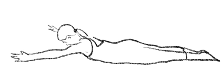 起始位:俯卧,双臂摆成大写字母“E”的姿势(肩外展、肘屈90度,前臂指向头侧)。脊椎中立,双脚并拢。头微微离开地面,与脊椎对齐。 呼吸与动作:吸气,手臂外旋,将手与前臂抬离地面。吐气,将手肘抬起,保持手掌高于手肘。吸气,将胸椎伸展后仰,手臂继续外旋。吐气,手臂延伸过头,手肘伸直,向斜上方延伸。吸气,将手臂带回“E”姿势,保持身体高度。吐气,躯干有控制地卷回垫上,保持手臂高度。手肘落回垫子,手仍高于手肘,最后前臂落回。 想象提示:想象手臂像稻草人的胳膊,关节处有清晰的转折和力量;从手肘到指尖形成一条延长的直线,向远方延伸。