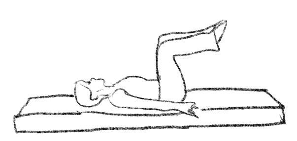 1. Start with legs slightly bent for roll over/back. 2. Lift legs to tabletop first, then straighten to ceiling. 3. Place blanket under shoulders to protect neck.