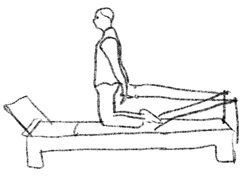 【Direct】While moving the arms, keep the center of the ear canal, acromion, and greater trochanter precisely aligned on the vertical gravity line. Focus on the inferior angle of the scapula, keeping it stable against the posterior ribs like an anchor as the arms reach forward. Maintain a constant vertical distance between the xiphoid process and the pubis to prevent excessive spinal extension caused by strap resistance. 【Indirect】Stable Piles: Imagine your knees and lower limbs are building foundation piles driven deep below the carriage, while the spine is a stable central tower; no amount of external wind (strap resistance) can shake you. Precision Rails: The arms are like carts running on horizontal precision guide rails, sent forward smoothly and uniformly by core power. Circular Reservoir: The arms embrace a giant circular reservoir; during movement, maintain the constant volume of this reservoir without deforming the circumference. 【Space】Frosted Glass Cylinder: Feel as if you are kneeling in the center of a tight vertical frosted glass cylinder; your elbows and torso must never brush against the inner edges of the walls. Sensing Air Texture: Use the backs of your hands and fingertips to sense and brush across the texture of the air in front, clearly marking every coordinate your arms reach in 3D space. Counter-Stretch Axis: Imagine the crown of your head reaching for a specific point on the ceiling while your knees sink toward the center of the earth, stretching the body extremely thin and long along the central axis. 【Feeling】Heavy Mercury Flow: Imagine being immersed in dense and heavy liquid mercury; every push and pull carries a strong damping sensation and a steady fluid quality. Silent Spring: Listen quietly to the subtle resonance of the springs stretching; attempt to make the sliding sound of the carriage imperceptible, using this silence as feedback for precise eccentric control. Internal Cool Spring: On inhalation, feel a stream of cool spring water flowing up the spine from the knees to the crown, washing away tension and leaving only ultimate extension and clarity.