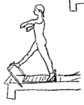 【起始位】[Russian]站立位,一脚踩脚棒,一脚踩滑板边缘,身体前倾,手扶脚棒。[Front]维持骨盆水平,吐气时向后推滑板,拉伸后腿髂腰肌和前腿腘绳肌;吸气拉回。[Lunge]吐气时弯曲后膝,吸气回正。