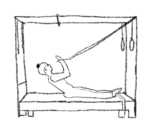 【Direct】Initiation: On exhale, guide the tailbone toward the back of the knees, molding each lumbar vertebra onto the mat sequentially from bottom to top. Scapular Alignment: Maintain a constant distance between the roll-down bar and sternum; feel the collarbones spreading flat toward the shoulders, avoiding shrugging. Elongation: During the reach, press heels evenly into the platform, using the counter-pressure to achieve maximal axial elongation in neutral. 【Indirect】Precision Iron Chain: Imagine your spine as a heavy, precision iron chain; each link carries solid weight, settling into the center of the mat one by one. Core-Operated Drawbridge: View your torso as a drawbridge precisely controlled by core 'cables'; deep abdominal tension is the steady winch lowering the bridge deck (spine) smoothly. Heavy Linen Roll: Imagine your body as a roll of thick, handmade linen; as it unfurls, the fabric remains evenly tensioned in the air without creases or collapse. 【Space】Filling the Table Width: As you roll down, imagine your back expanding to fill the entire width of the Trapeze Table, gaining stability through lateral breadth. Cross-Room Geometric Arc: Feel your crown and the bar collectively tracing a massive geometric arc across the room, ensuring the movement path remains three-dimensionally full. Squeezing Out Air Shadows: As you lower, attempt to squeeze out and fill the thin layer of 'air shadow' between each vertebra and the mat. 【Feeling】Peeling Postage Stamps (Rhythm/Tactile): Feel the spine lifting like peeling a row of perforated postage stamps; the micro-resistance and strong rhythm ensure high-quality articulation. Warm Silt Bed (Suction): Imagine the mat as a pool of warm silt; each vertebra is gently cradled and suctioned by the sand as it lands, providing deep security. Viscous Jelly Air (Resistance): When rolling up, feel the air turn into thick jelly; you must push through this medium with steady force to eliminate any jitters from uneven speed.