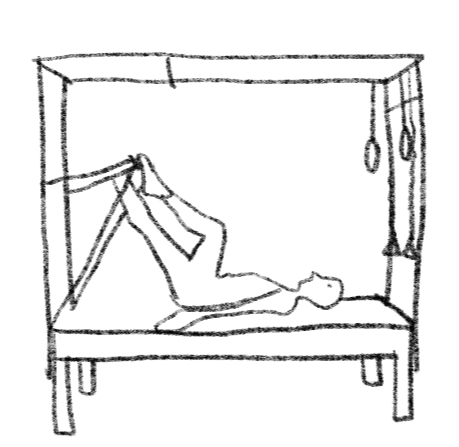 起始位:仰卧,脚踩塔杆。吸气:准备;吐气:推杆至膝伸直;吸气:控制回起始位。想象腿部像折扇展开。