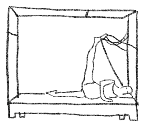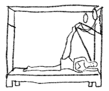 侧卧头向塔杆,下方腿伸直,上方脚踩杆。