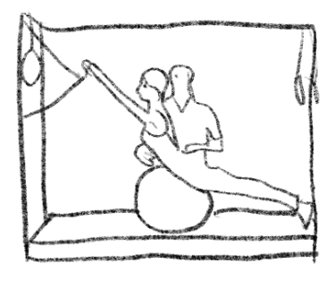 P- Maintain the extended backbend position. Practice shoulder flexion and extension.【Body Position Variations】:;1.Single arm; 2.Outside foot on the floor, outside hand on knee or bed. Can do just thoracic extension or full backbend.;3.Use a large exercise ball for support.;