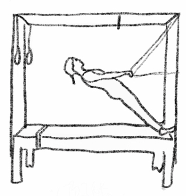 Sitting holding tower bar, feet on uprights (or supine, feet on trapeze frame).