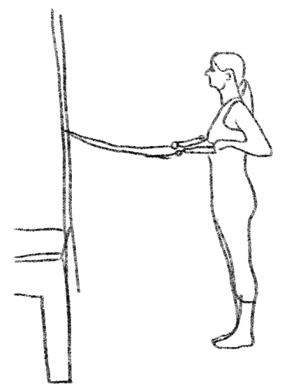【起始位】面对千床站立,躯干垂直,重心在脚球。 【动作口令】吐气传力杆下压,手腕伸直;吸气回到开始位。保持肩胛宽阔。